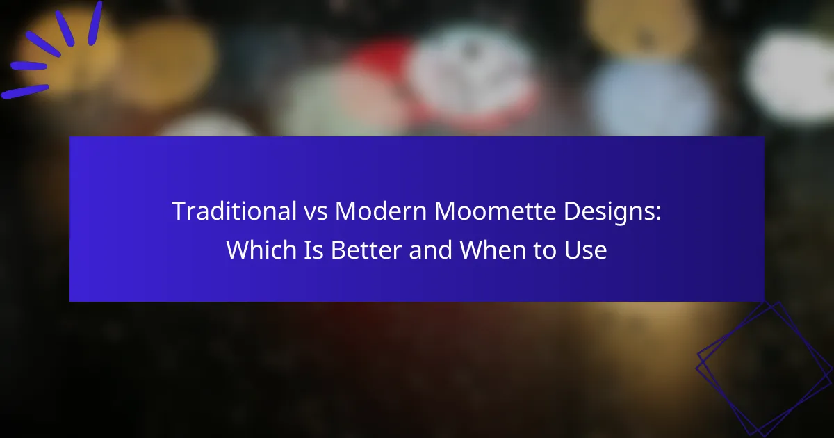 Choosing between traditional and modern moomette designs involves understanding their distinct characteristics and suitable applications. Traditional designs are favored for formal events, showcasing intricate patterns and cultural significance, while modern designs embrace minimalism and contemporary trends, making them versatile for various settings. Knowing when to use each style can enhance the overall aesthetic and functionality of your occasion.